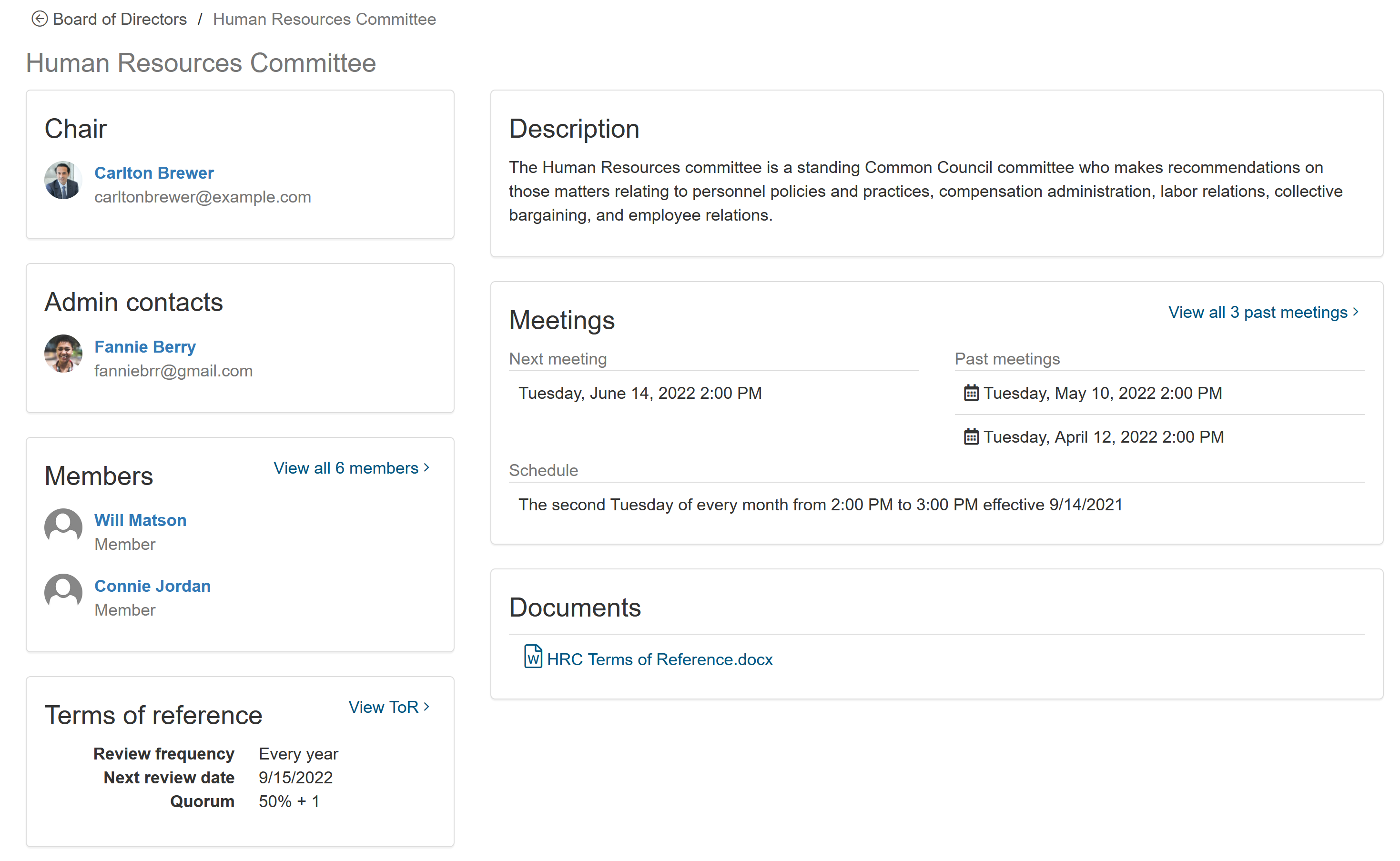 A subcommittee is a committee, with all the same features and functions, but has a linkage to a ‘parent’ committee in the same organization. (Only standard plans or higher have subcommittees enabled).