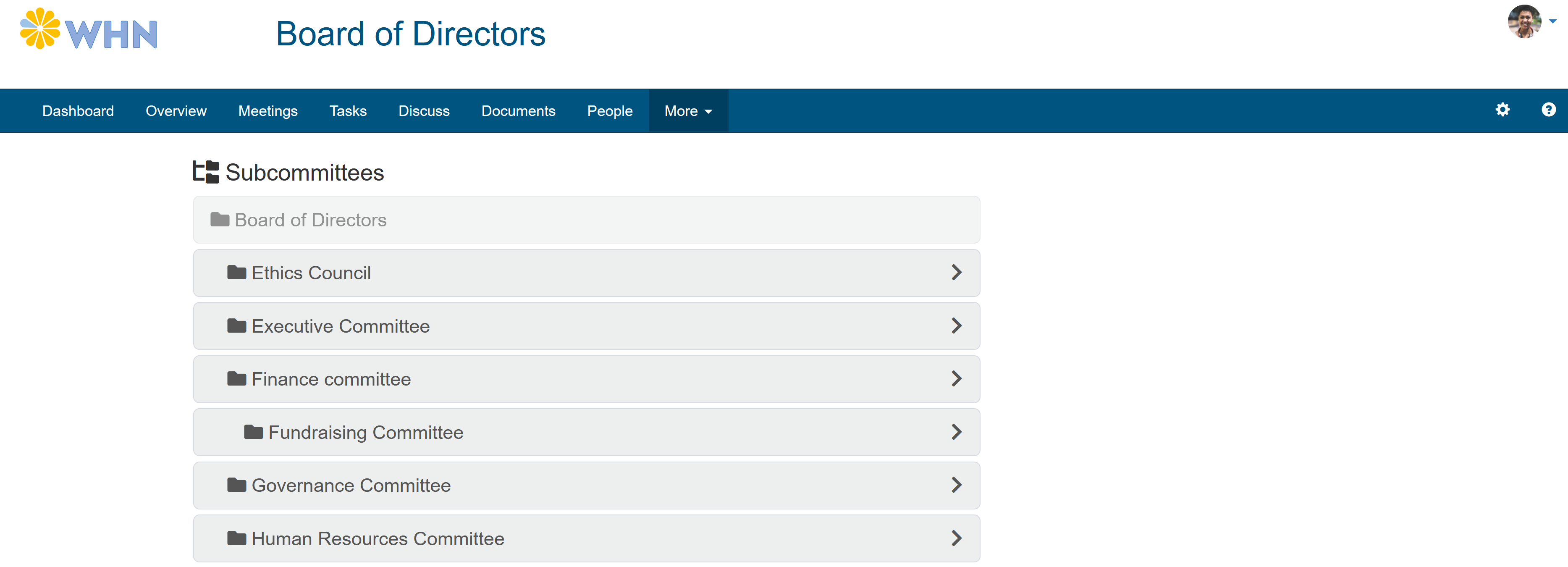 All subcommittees with their hierarchy can be seen by selecting ‘Subcommittees’ under the ‘More’ menu.