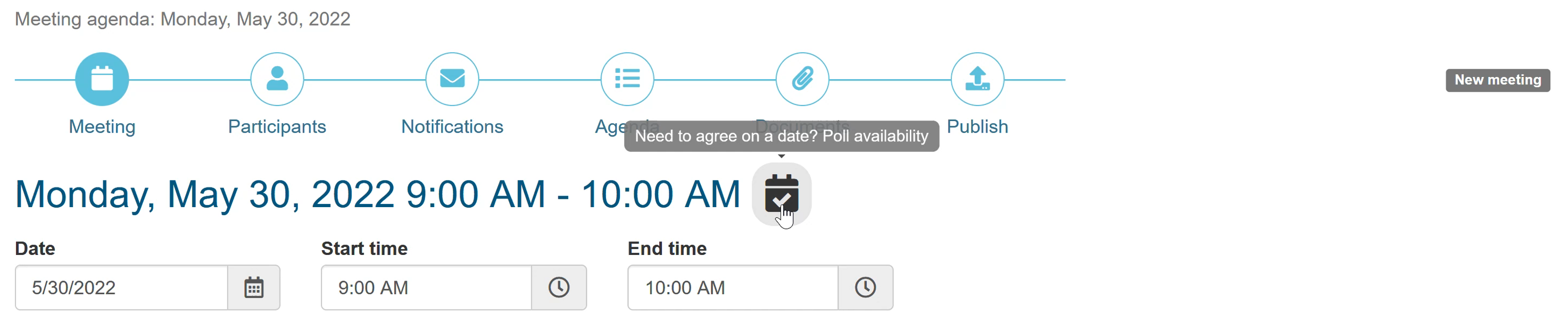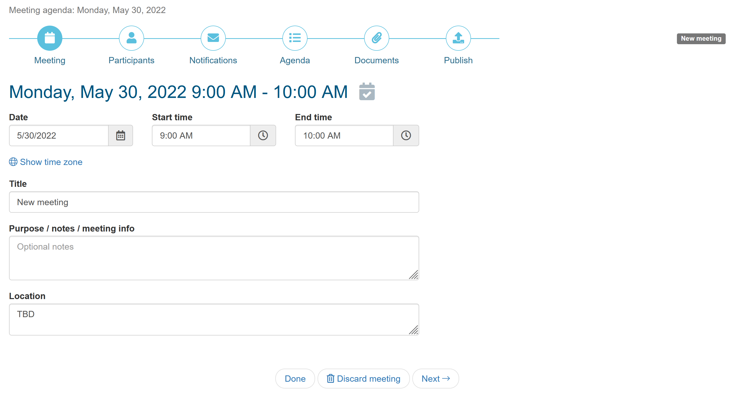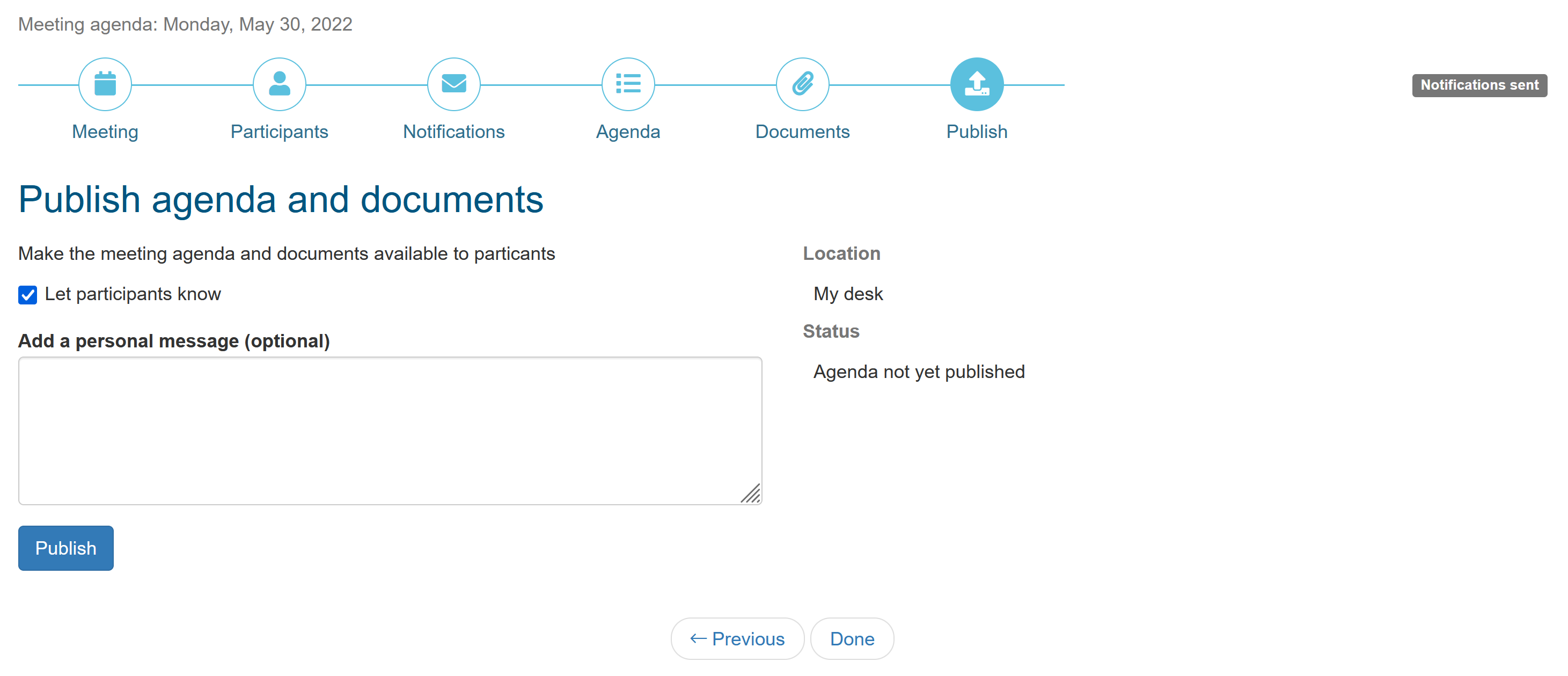 If the agenda is quick and easy to create, you can skip this step and publish the agenda and notify participants together in the last step of the wizard.