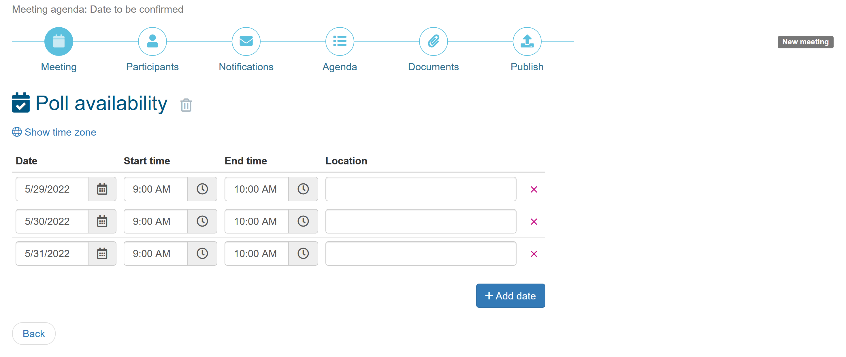 Click on ‘Add date’ to suggest more possible meeting dates and times.