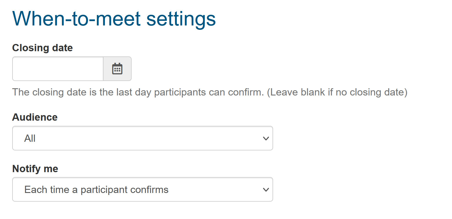 As long as the when-to-meet is not published, members won’t be able to see it. You can preview the when-to-meet and go back to make any changes if necessary. Once finalized, publish the when-to-meet and send notifications.